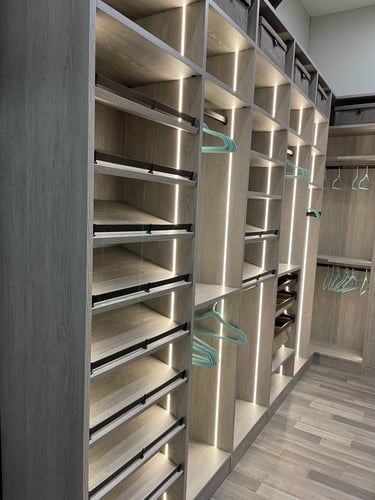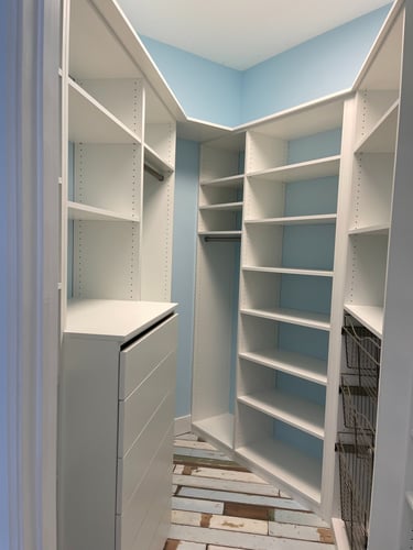 Our closet feels so organized now, thanks to the custom shelving and expert installation.